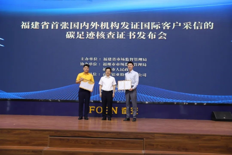 2025年8月19日,在福建省市场监督管理局指导下,由方圆标志认证集团有限公司(以下简称“方圆认证”)与上海天祥质量技术服务有限公司联合签发的福建省首张国内外机构共同发证、获国际客户采信的碳足迹核查证书在奋安铝业股份有限公司正式发布。此项成果标志着福建企业在绿色低碳转型与国际市场竞争力提升上迈出关键一步,为全省出口型企业提供了可复制的绿色发展范本。