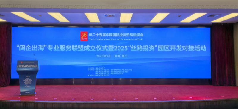 为精准服务福建省企业“走出去”,充分整合利用专业服务机构资源,搭建与境外优质园区的直接对接桥梁,推动企业稳妥有序地进行全球化布局,9月9日下午,由福建省商务厅主办、福建省机电科技产品进出口商会协办的“闽企出海”专业服务联盟成立仪式暨2025“丝路投资”园区开发对接活动在厦门宾馆明宵厅成功举办。