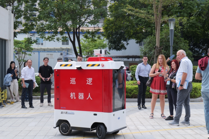 随后,在汉特云公司展厅,种类繁多的智能机器人一字排开,向研修班展示了中国智能科技的实力。安防巡逻车、智能物流快递机器人等产品格外引人注目。作为福建省内首家具备全栈式智能机器人研发能力的企业,汉特云手握100余项发明专利,其核心技术支撑的“笨笨家族”系列机器人已应用于多个重要场景,它们不仅服务于北京冬奥会、兰州机场等重大场合,还亮相于数字中国建设峰会等重大活动的服务保障工作。随着参观结束,研修班成员带着满满的收获离开汉特云公司。
