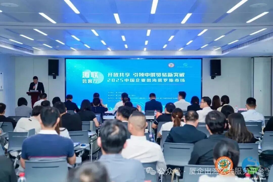第25期“海联会客厅——开放共享,引领中俄贸易新突破”暨“2025中国企业出海俄罗斯市场”对接交流会于2025年11月13日在厦门海上世界成功举办。此次会议由厦门市海外综合服务(俄罗斯)工作站承办,来自厦门建发汽车有限公司、厦门金龙旅行车有限公司、奥佳华智能健康科技集团股份有限公司等五十余家企业参加了此次会议活动。此次会议举办旨在帮助更多外贸企业应对当前挑战,突破中美关税壁垒下的发展困境,拓展产业升级、数字贸易创新路径,构建更具韧性的全球市场销售体系,助力外贸企业拓展俄罗斯和中亚市场的战略机遇。