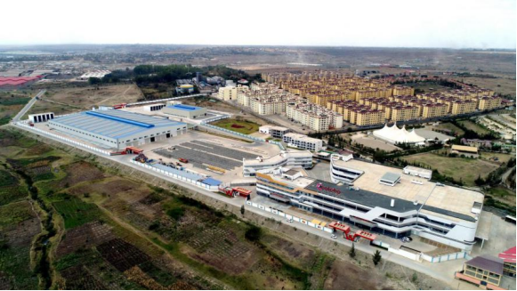 当地员工在中国武夷肯尼亚建筑工业化研发生产基地生产线上
