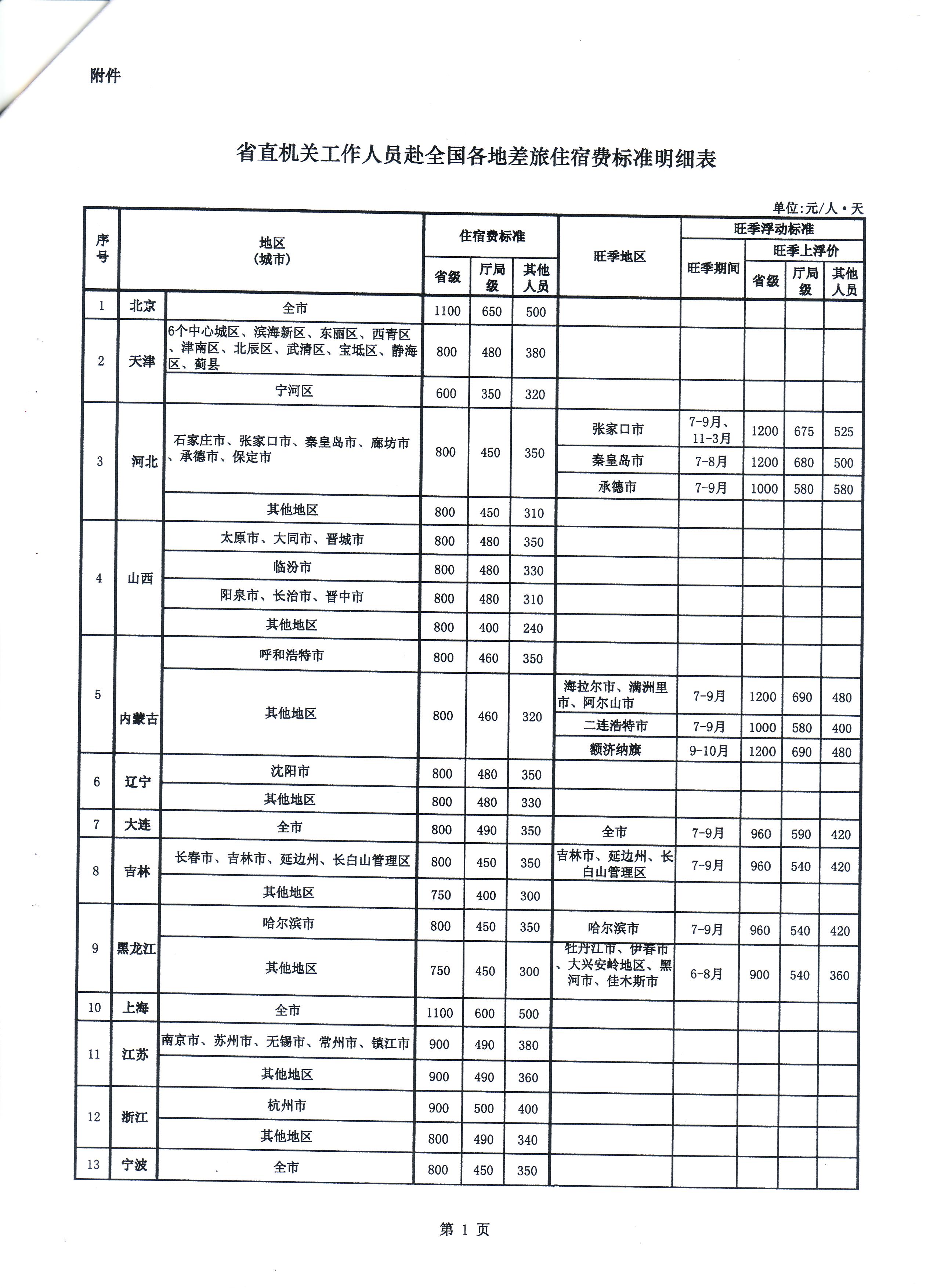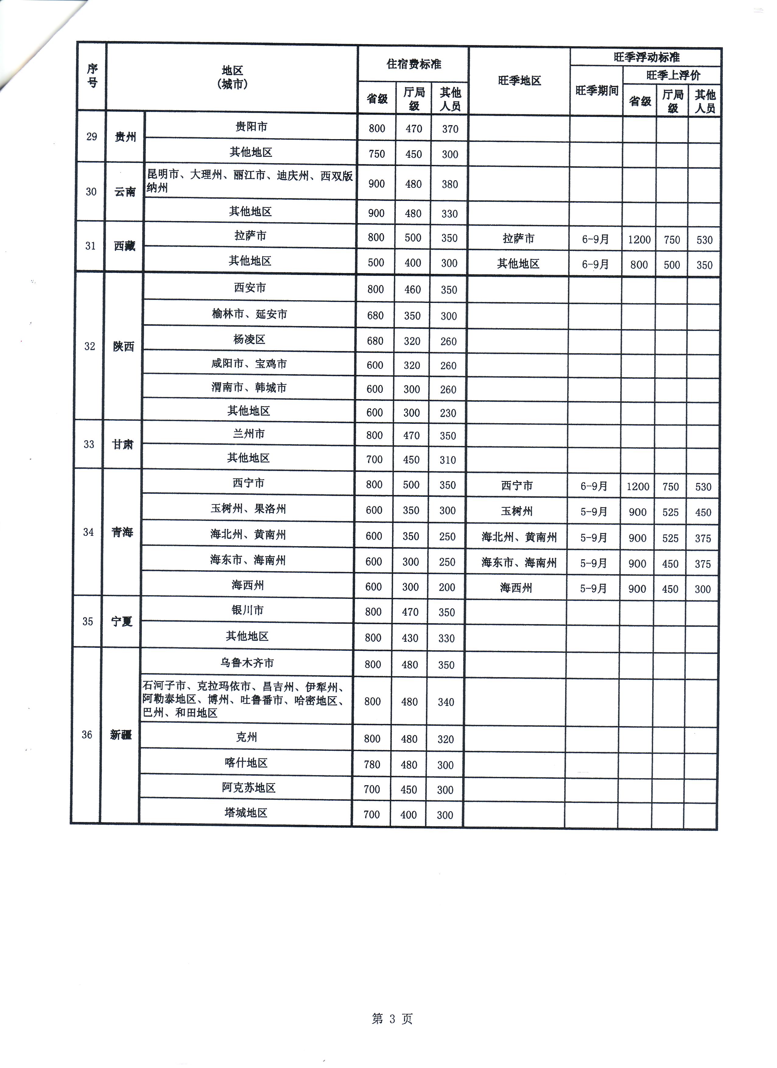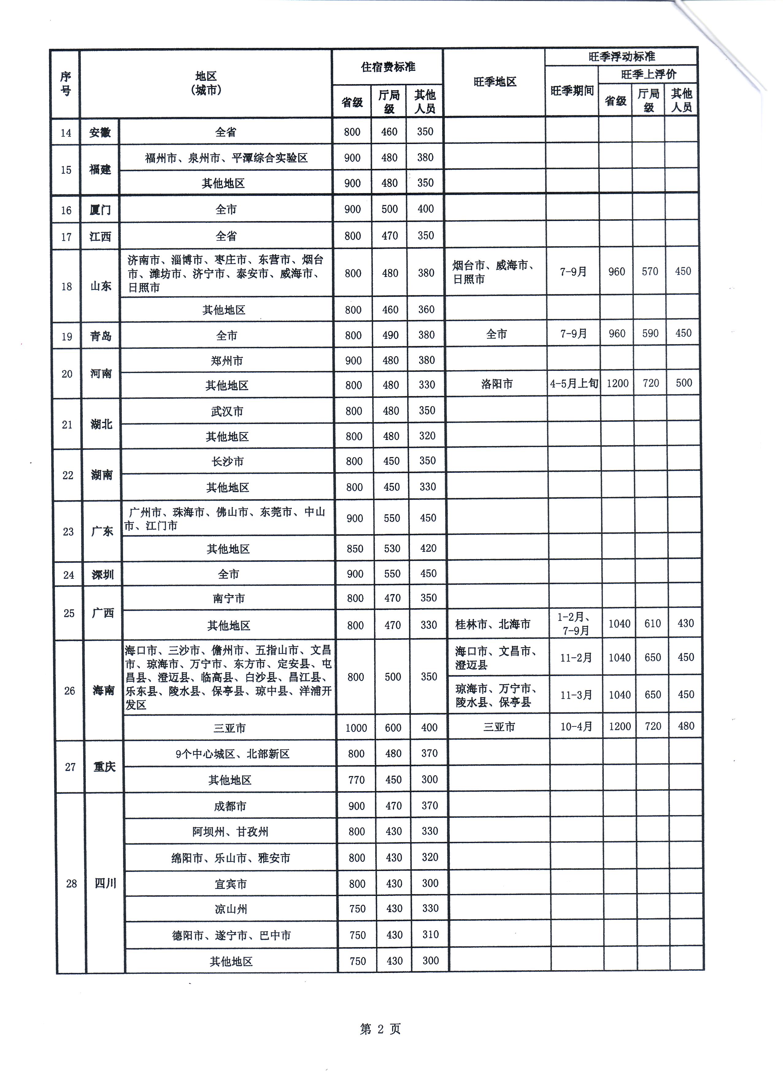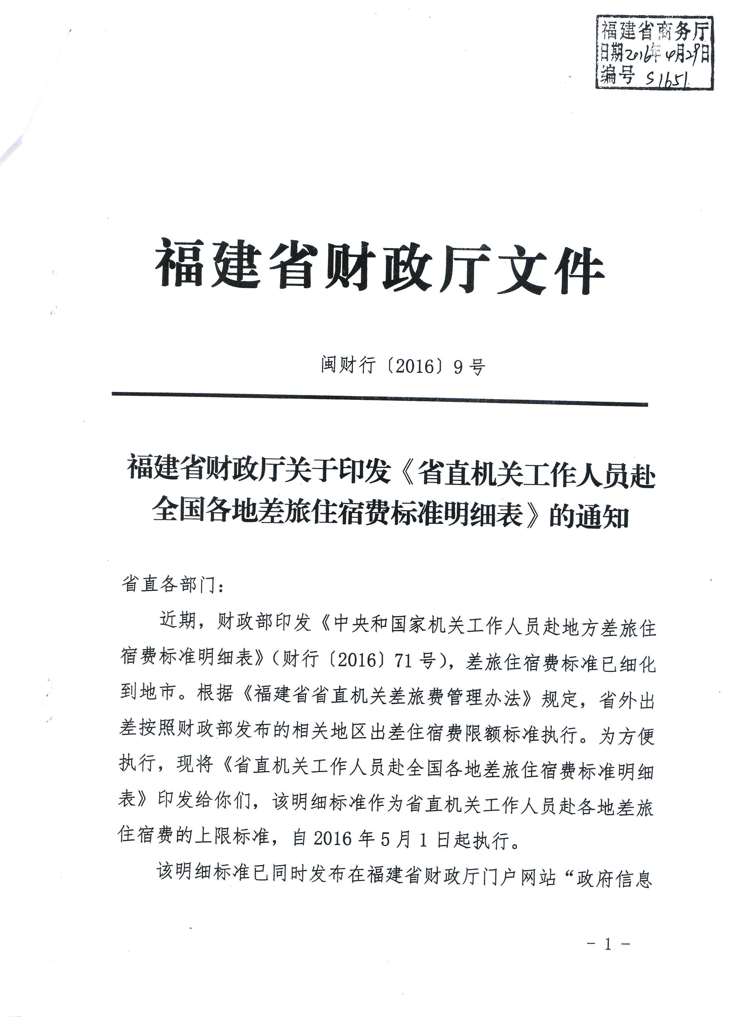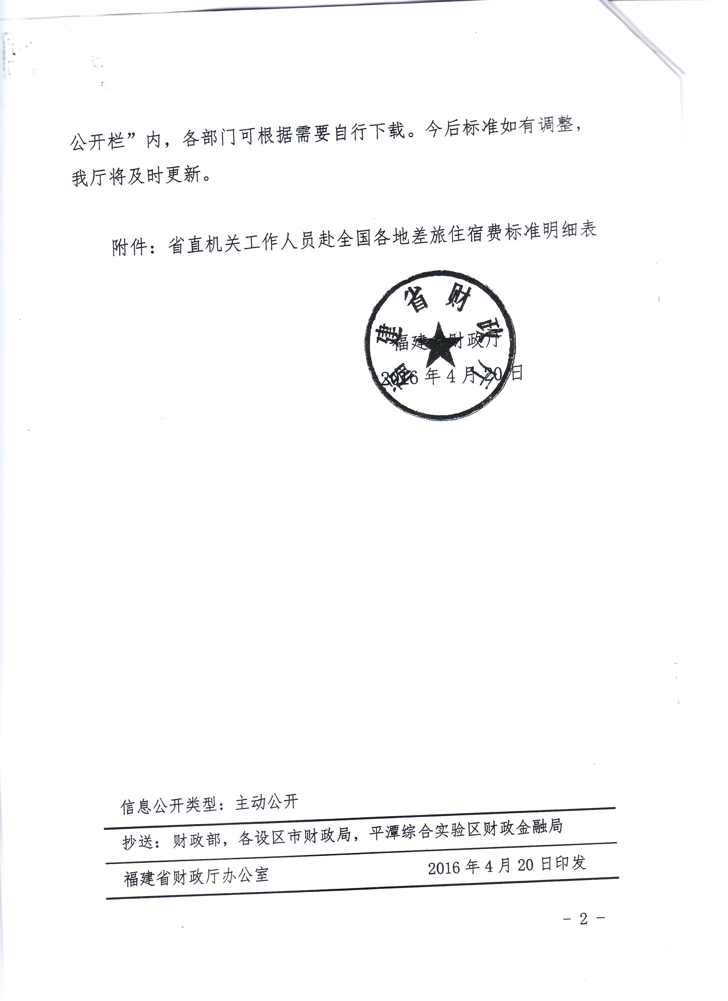 福建省财政厅关于印发《省直机关工作人员赴全国各地差旅住宿费标准明细表》的通知