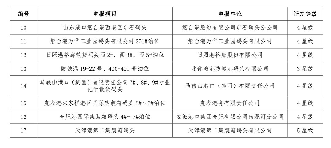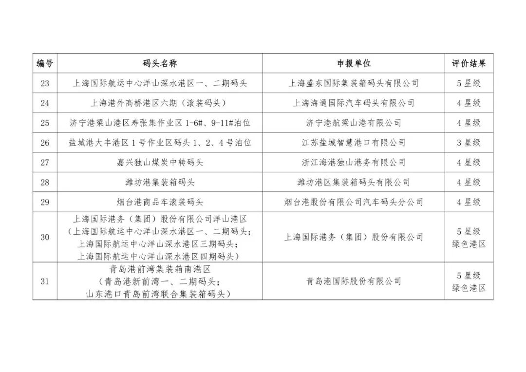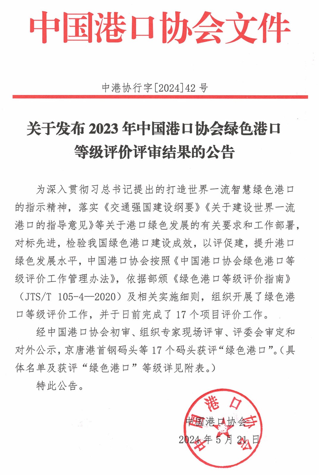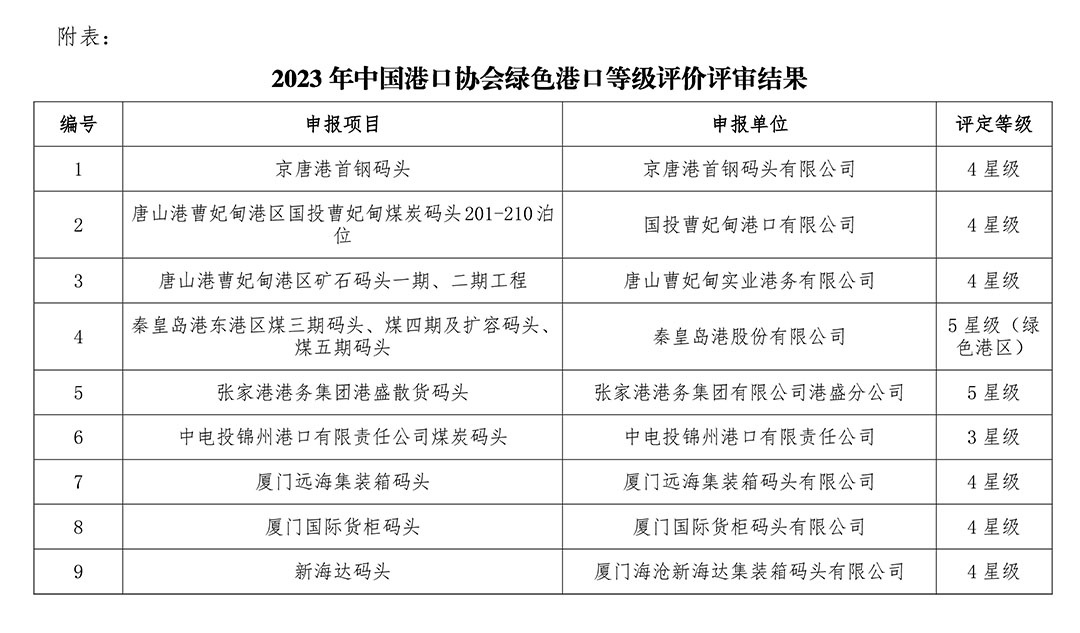 关于中国港口协会绿色港口等级评价评审结果的公示