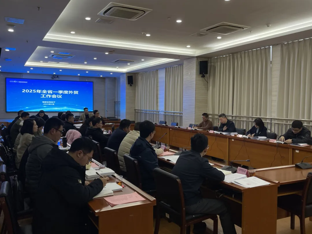 为落实全国外贸工作会议精神,做好2025年一季度外贸“开门稳”工作,全力以赴完成外贸目标,福建省商务厅于2月8日组织召开全省外贸工作会议。会上传达了2025年全国外贸工作会议精神,通报1月份全省外贸运行情况,分析一季度全省外贸发展形势,并布置有关工作。各地市商务部门围绕一季度预期完成情况、困难问题和对策举措进行交流发言。