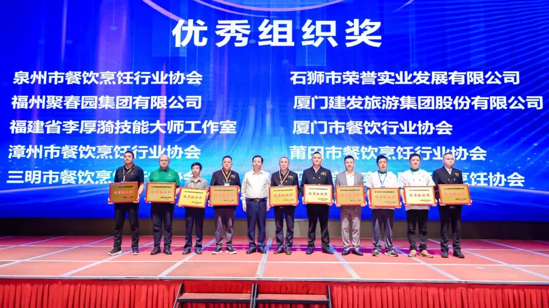 10月16日至18日,由福建省商务厅和福建省总工会联合主办,泉州市商务局、石狮市人民政府、福建省财贸轻纺烟草医药工会工作委员会以及福建省餐饮烹饪行业协会共同承办的2024年福建省新闽菜创新技能竞赛在泉州石狮顺利落下帷幕。福建省商务厅副厅长杭东,泉州市委常委、政法委书记、市政府副市长、市申创“世界美食之都”工作专班常务副主任、办公室主任蔡天守,省总工会二级巡视员孙勤,泉州市商务局党组书记、局长张小红、石狮市政府市长余志伟、福建省餐饮烹饪行业协会书记、执行会长翁贵明等领导莅临现场并为获奖选手颁奖。