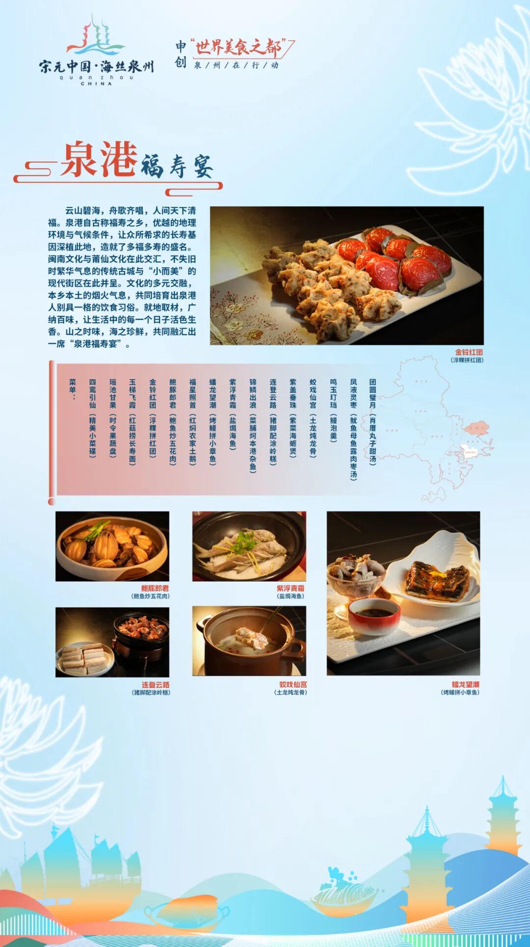 泉港自古称福寿之乡。文化的多元交融,本乡本土的烟火气息,共同融汇出一席“泉港福寿宴”。