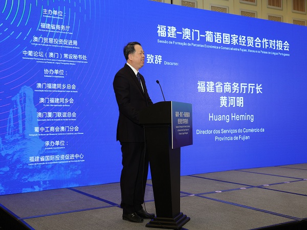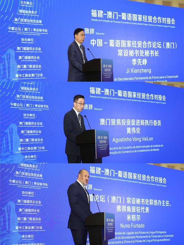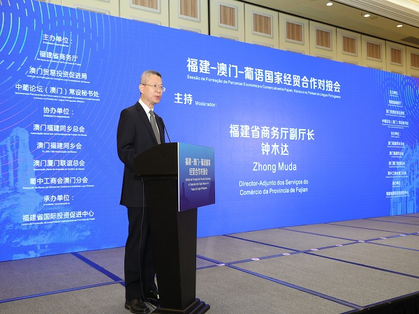 10月20日下午,由福建省商务厅、中葡论坛(澳门)常设秘书处、澳门贸易投资促进局主办,澳门福建同乡总会、澳门福建同乡会、澳门厦门联谊总会、葡中工商会澳门分会协办的“福建-澳门-葡语国家经贸合作对接会”在澳门成功举行。