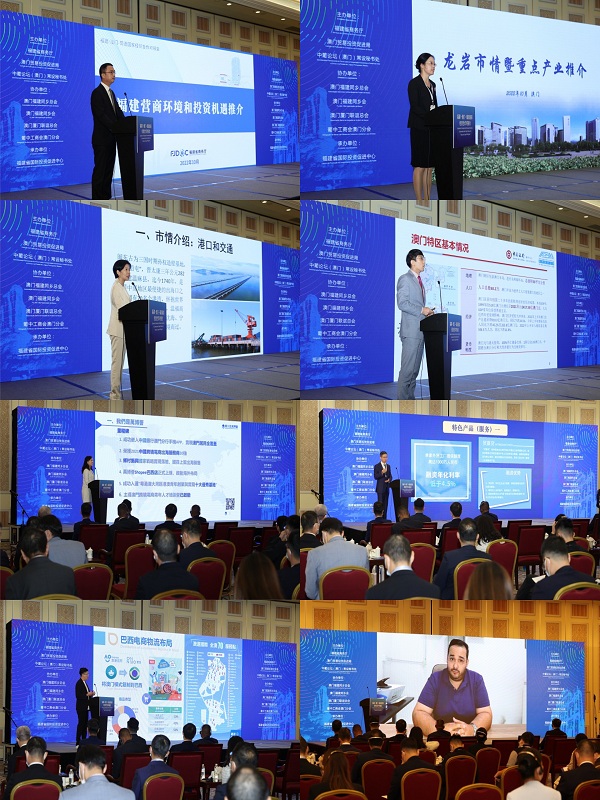 福建省商务厅、福建省龙岩市、宁德市分别推介福建营商环境、各地投资机遇及重点产业等。澳门银行公会、新大陆全球购跨境电商、巴西Supremo Açai(超级巴西莓)、厦门宏鹏发、澳运国际分别介绍了各自行业情况、企业概况和合作机遇。