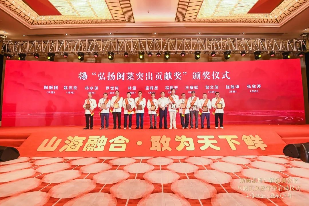 启动仪式上,福建省商务厅分别与中国烹饪协会、中国饭店协会、世界中餐业联合会以及美团、京东零售、阿里本地生活集团、滴灌通等企业签订了战略合作协议,共同助力新闽菜发展。11位在闽菜餐饮行业做出重要贡献并得到广泛认同的闽菜厨师,被授予“弘扬闽菜突出贡献奖”。