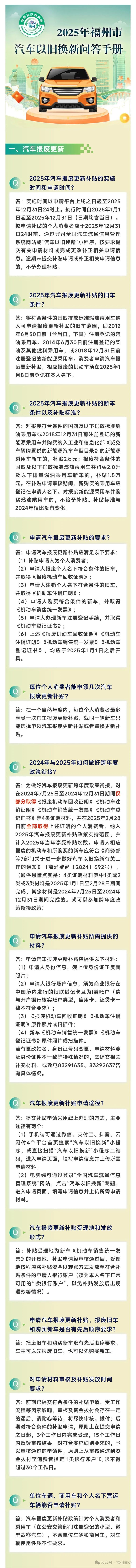 福州市商务局关于《福州市2025年汽车报废更新补贴实施细则》《福州市2025年汽车置换更新补贴实施细则》的解读