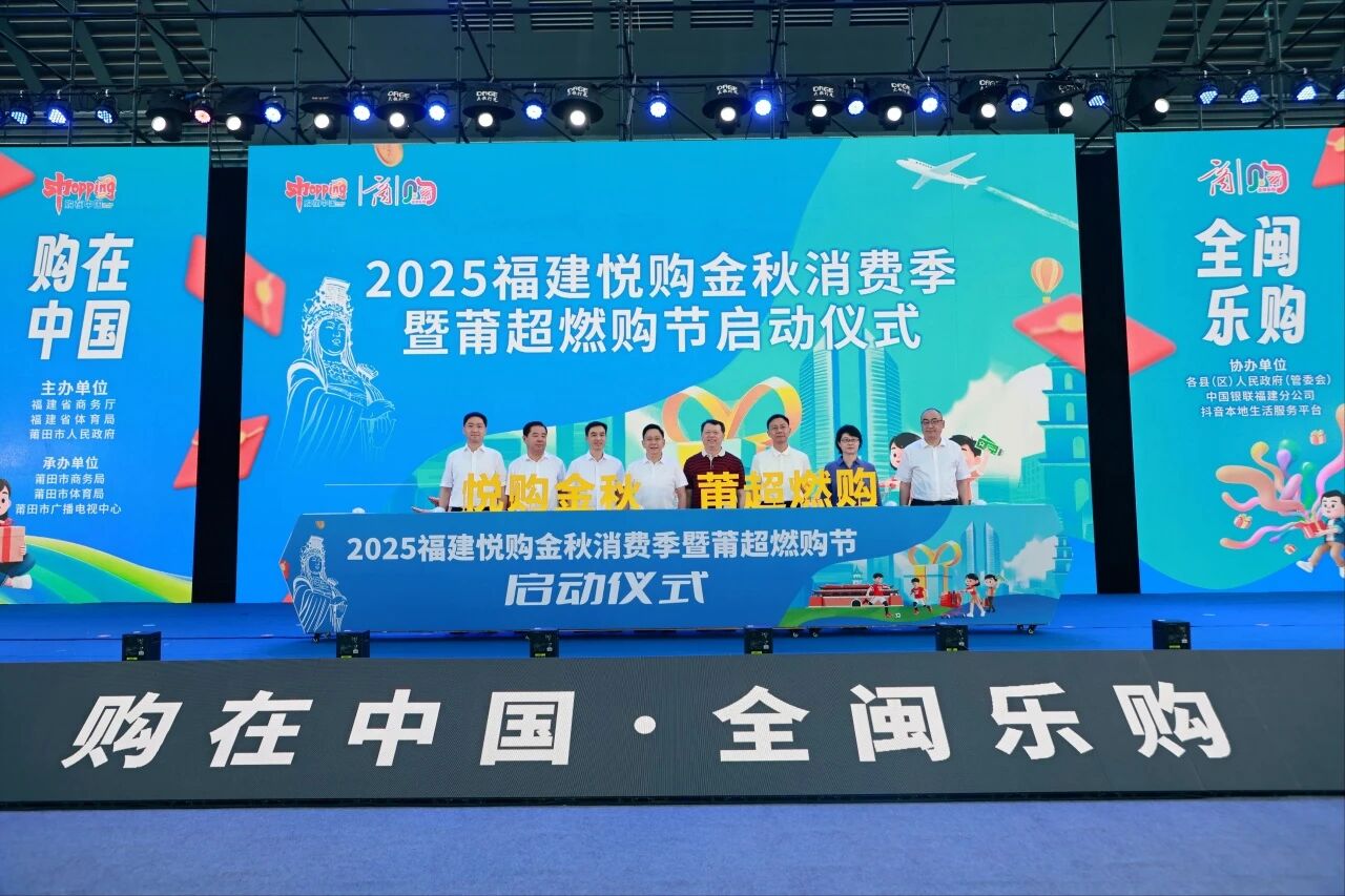 9月27日下午,“购在中国·全闽乐购”2025福建悦购金秋消费季暨莆超燃购节在莆田市体育中心启动。此次活动以“悦购金秋·莆超燃购”为主题,结合莆田市足球联赛决赛,打造多元消费场景。