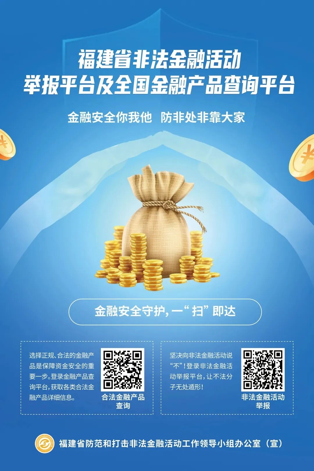 金融业务属于特许经营范畴,未经批准开展金融活动均属非法,参与此类活动造成的损失将无法获得法律保护。如不慎被骗或发现非法金融APP,及时拨打110报警电话,或扫码登录福建省非法金融活动举报平台向地方金融监管部门举报,尽可能提供APP名称、下载链接、聊天记录、转账凭证等证据,助力案件查办。