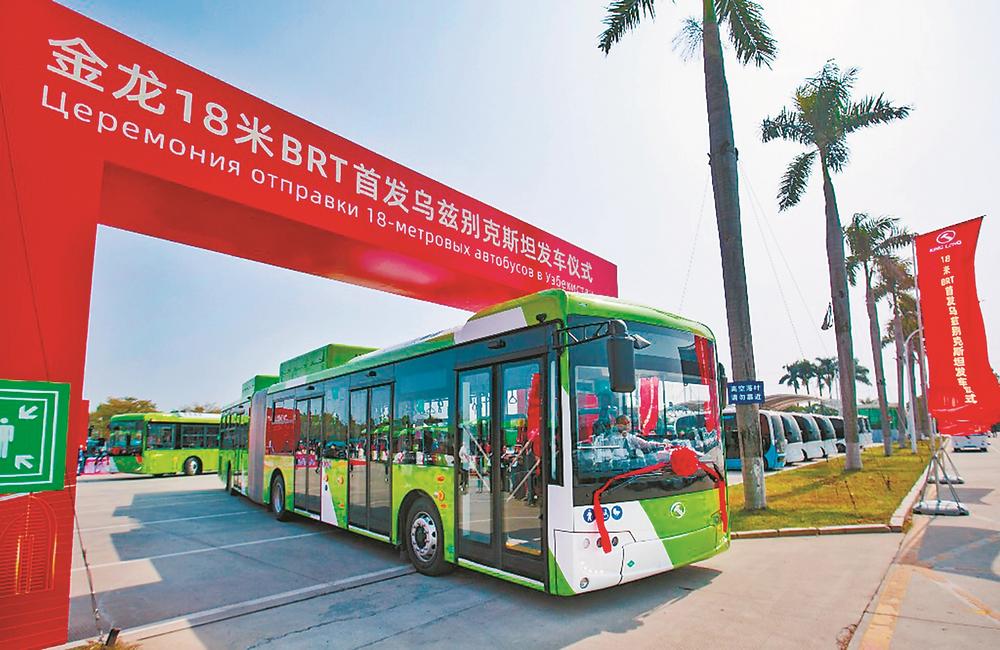 今年1月,乌兹别克斯坦交通部长带队来华考察客车制造厂商,对金龙客车的产品质量、创新理念、科学技术、流程管理给予了高度肯定,签下200辆金龙18米BRT公交车的订单。这是中国首次向乌兹别克斯坦出口该车型,也是今年开年以来我国客车企业在“一带一路”沿线国家交付的最大一笔BRT订单。