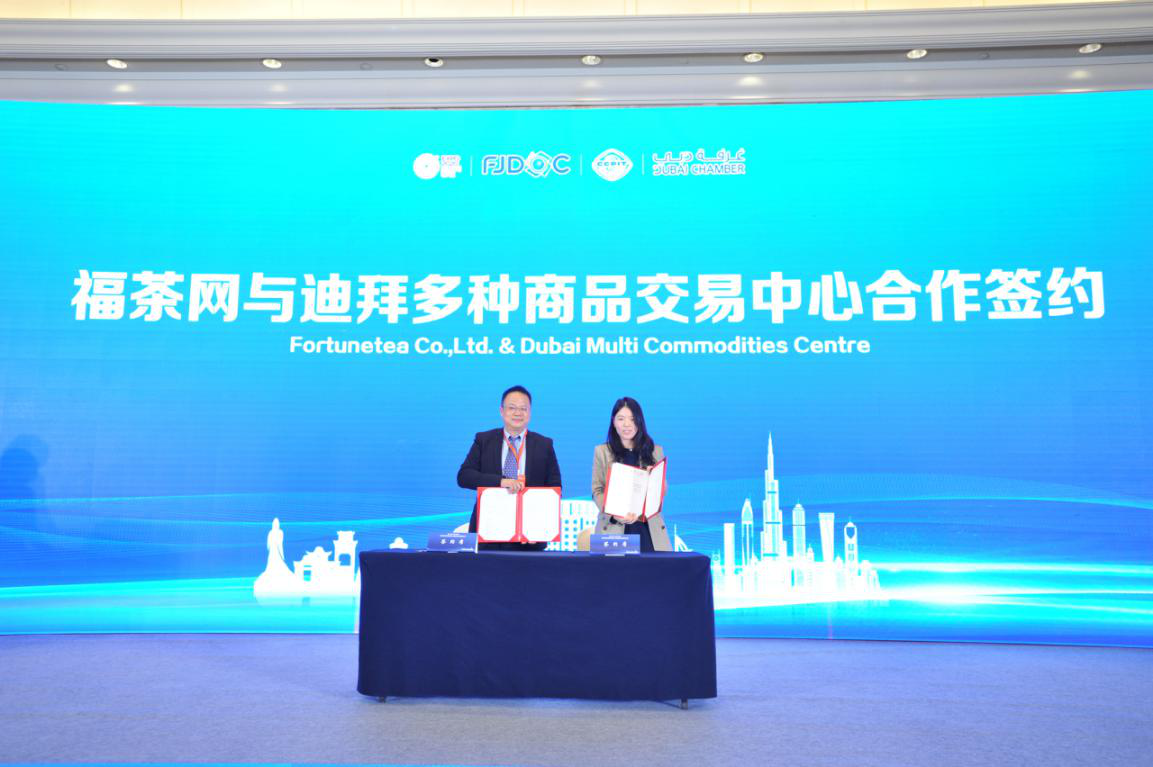 近日,在迪拜世博会路演暨福建-阿联酋投资贸易促进大会上,福茶网与迪拜多种商品交易中心(DMCC)签署合作备忘录,双方同意发挥各自优势、整合各自资源,加强茶产业、茶科技等领域交流互动,共同推动福建与阿联酋贸易往来与投资合作。