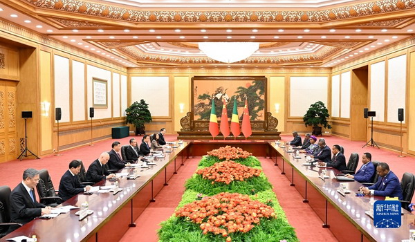 2023年10月19日下午,国家主席习近平在人民大会堂会见来华出席第三届“一带一路”国际合作高峰论坛的刚果(布)总统萨苏。