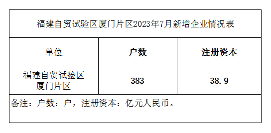 福建自贸试验区厦门片区2023年7月新增企业情况表