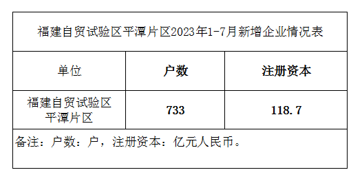 福建自贸试验区平潭片区2023年1-7月新增企业情况表