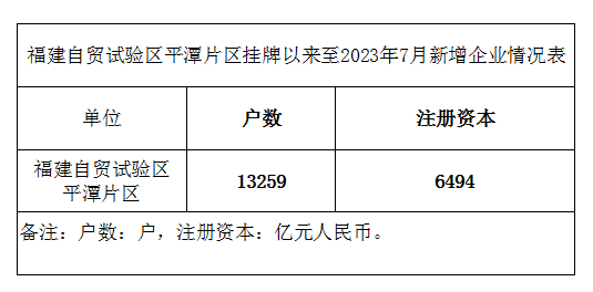 福建自贸试验区平潭片区挂牌以来至2023年7月新增企业情况表