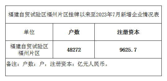 福建自贸试验区福州片区挂牌以来至2023年7月新增企业情况表