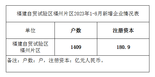 福建自贸试验区福州片区2023年1-8月新增企业情况表
