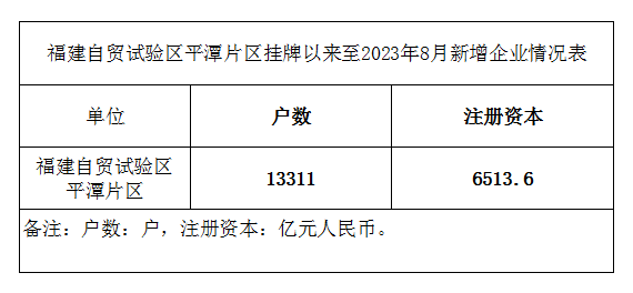 福建自贸试验区平潭片区挂牌以来至2023年8月新增企业情况表