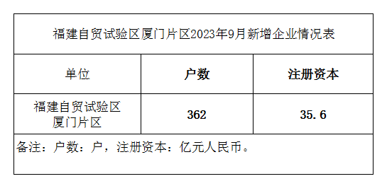福建自贸试验区厦门片区2023年9月新增企业情况表