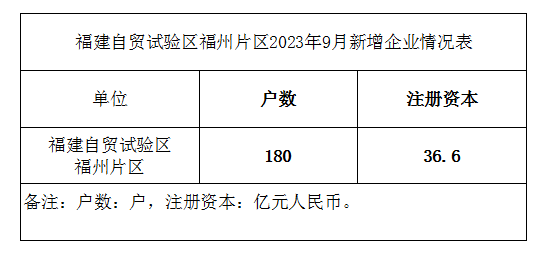 福建自贸试验区福州片区2023年9月新增企业情况表