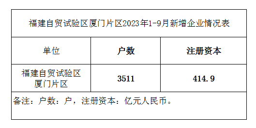 福建自贸试验区厦门片区2023年1-9月新增企业情况表