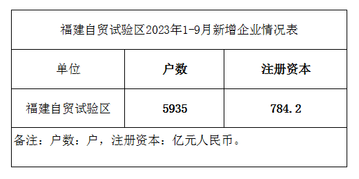 福建自贸试验区2023年1-9月新增企业情况表