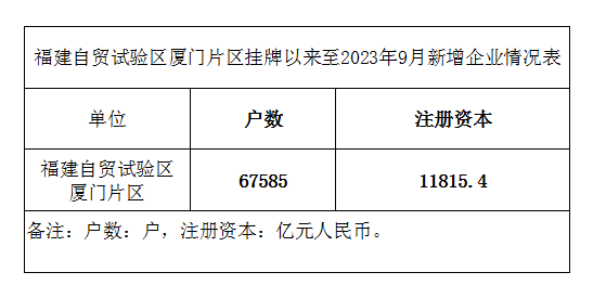 福建自贸试验区厦门片区挂牌以来至2023年9月新增企业情况表