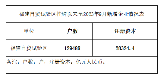 福建自贸试验区挂牌以来至2023年9月新增企业情况表
