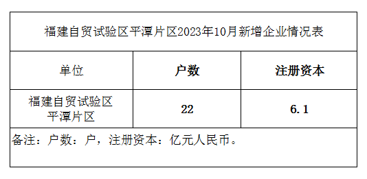 福建自贸试验区平潭片区2023年10月新增企业情况表