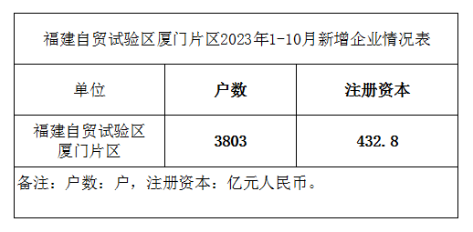 福建自贸试验区厦门片区2023年1-10月新增企业情况表
