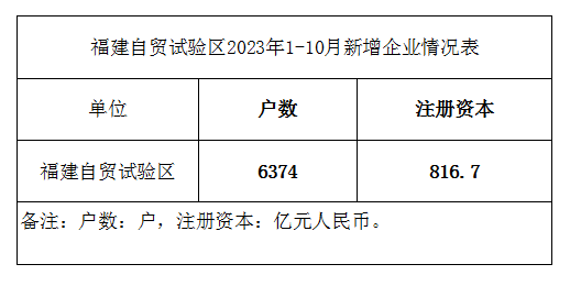 福建自贸试验区2023年1-10月新增企业情况表