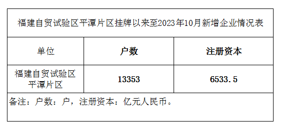 福建自贸试验区平潭片区挂牌以来至2023年10月新增企业情况表