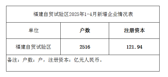 福建自贸试验区2025年1-4月新增企业情况表