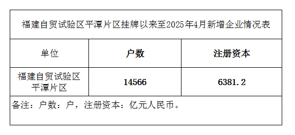 福建自贸试验区平潭片区挂牌以来至2025年4月新增企业情况表