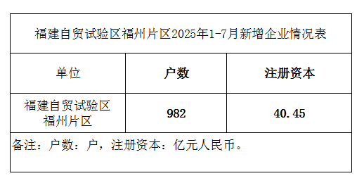 福建自贸试验区福州片区2025年1-7月新增企业情况表