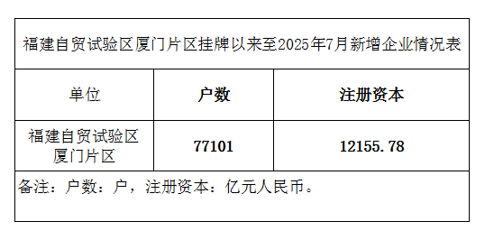 福建自贸试验区厦门片区挂牌以来至2025年7月新增企业情况表