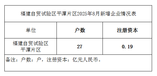 福建自贸试验区平潭片区2025年8月新增企业情况表