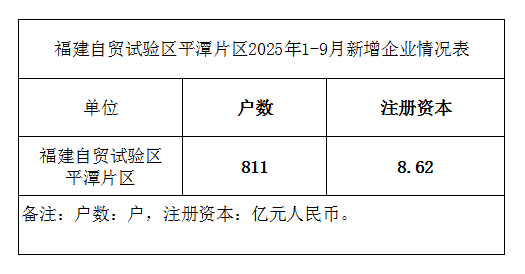 福建自贸试验区平潭片区2025年1-9月新增企业情况表