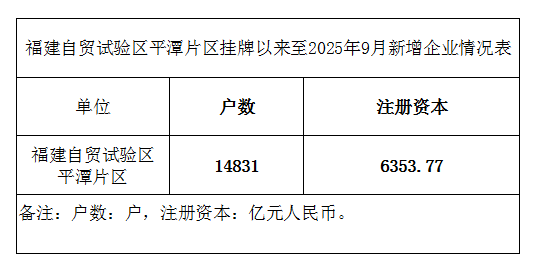福建自贸试验区平潭片区挂牌以来至2025年9月新增企业情况表