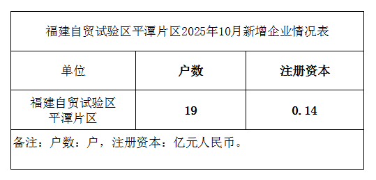 福建自贸试验区平潭片区2025年10月新增企业情况表