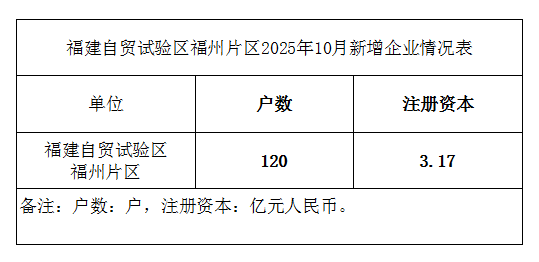 福建自贸试验区福州片区2025年10月新增企业情况表