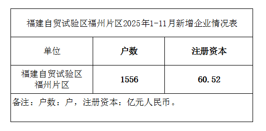 福建自贸试验区福州片区2025年1-11月新增企业情况表