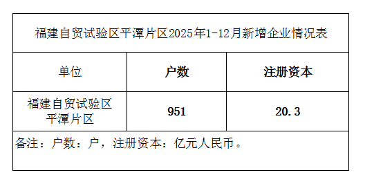 福建自贸试验区平潭片区2025年1-12月新增企业情况表