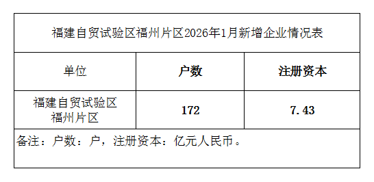 福建自贸试验区福州片区2026年1月新增企业情况表