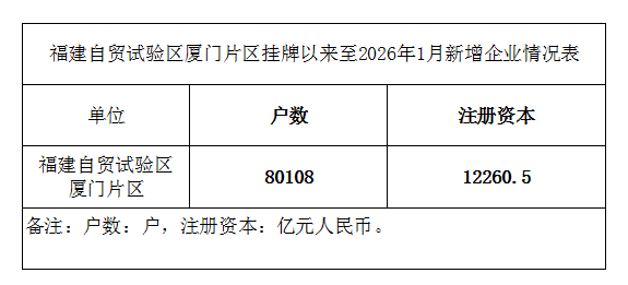 福建自贸试验区厦门片区挂牌以来至2026年1月新增企业情况表