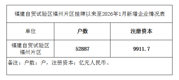 福建自贸试验区福州片区挂牌以来至2026年1月新增企业情况表