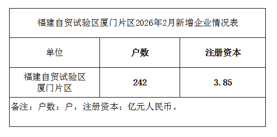 福建自贸试验区厦门片区2026年2月新增企业情况表